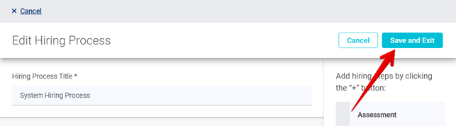 8. Click the Save and Exit button in the top right corner of the page to update your hiring process.